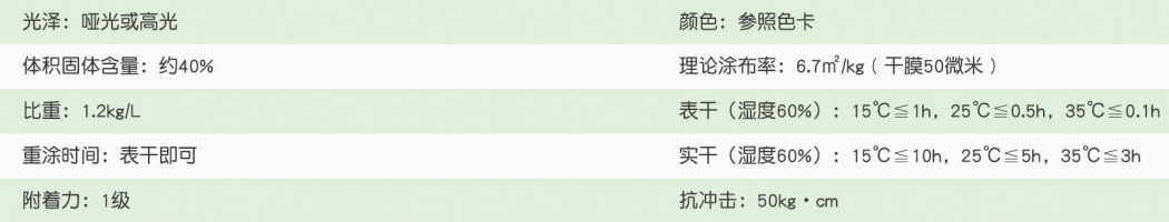 具有良好耐久性(使用年限3-4年以上)和装饰性,色泽持久亮丽;良好的防锈封闭性能,耐酸碱盐雾,水性环保。